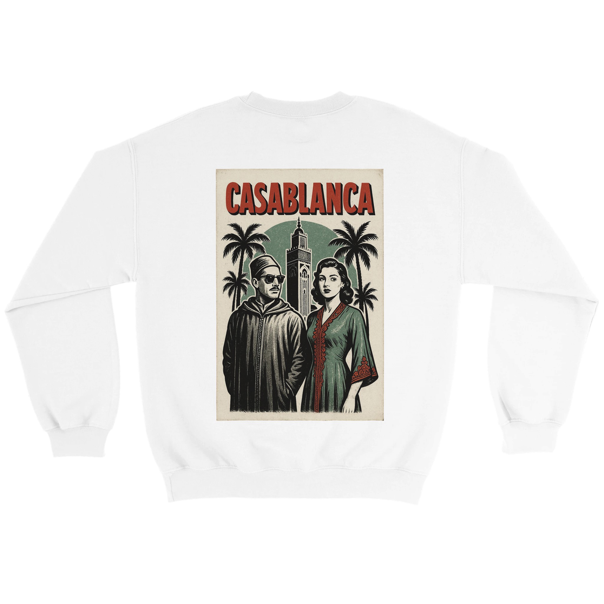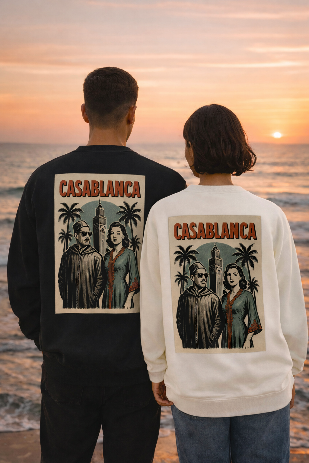 Casablanca 🎬 Design poster vintage inspiré du film iconique. Hommage à la ville blanche et à l’âge d’or du cinéma. Style rétro intemporel.