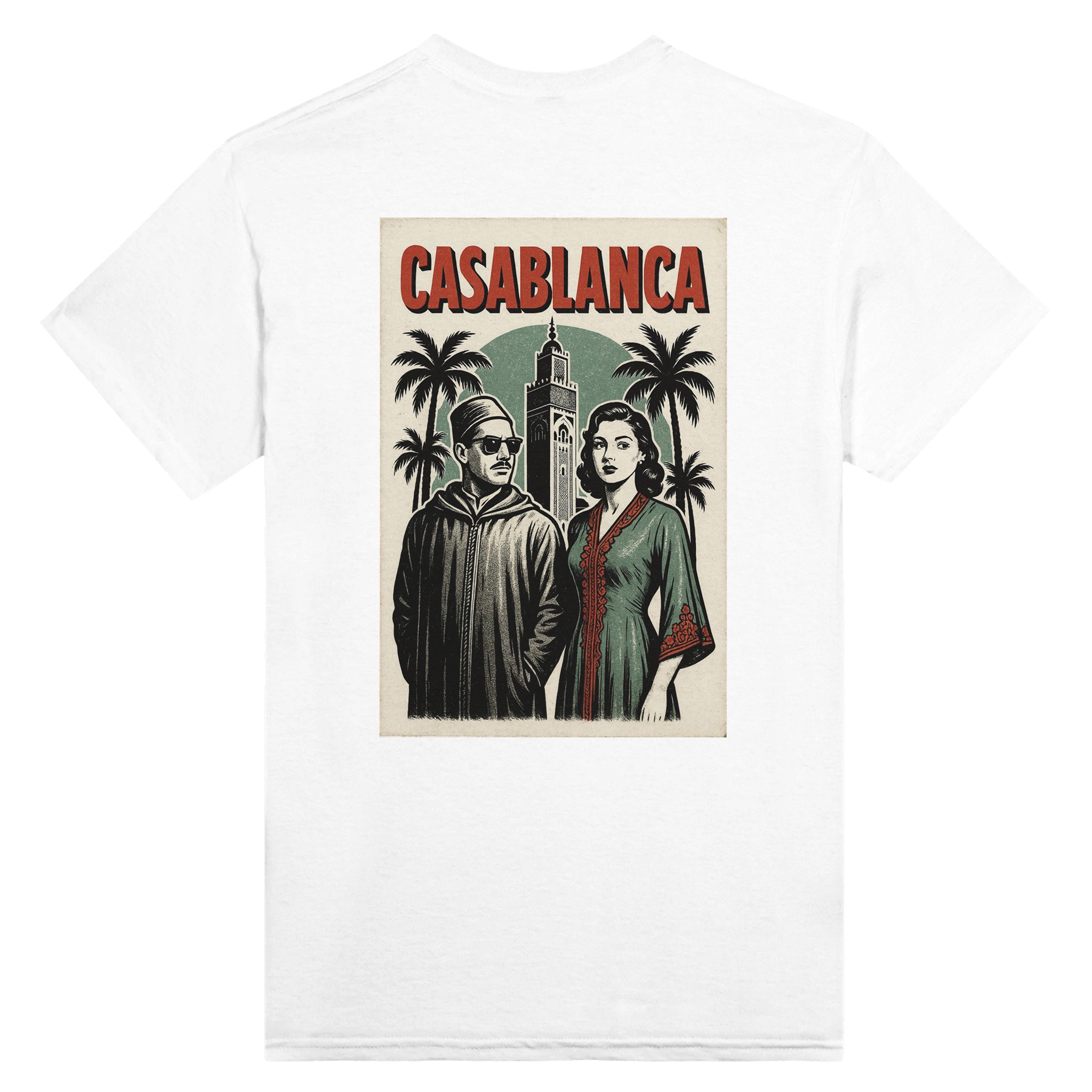 Casablanca 🎬 Design poster vintage inspiré du film iconique. Hommage à la ville blanche et à l’âge d’or du cinéma. Style rétro intemporel.